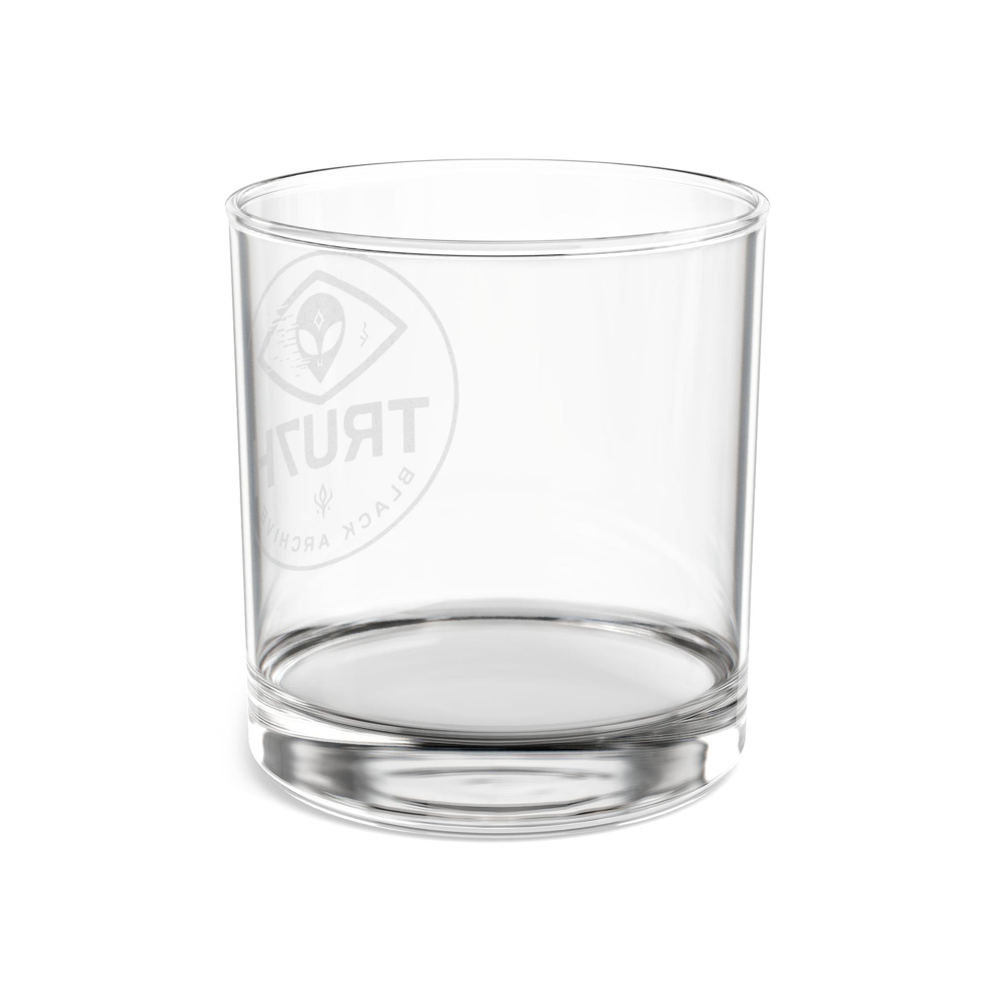 This black archive clothing-themed rocks glass is for the thinkers, skeptics, and beautifully unhinged. With a modern and elegant design featuring vibrant prints, this 10oz glass is perfect for those who wear rebellion like ritual and humor like armor. Made in the USA with clear tempered glass construction, this glass is ideal for handwashing only.